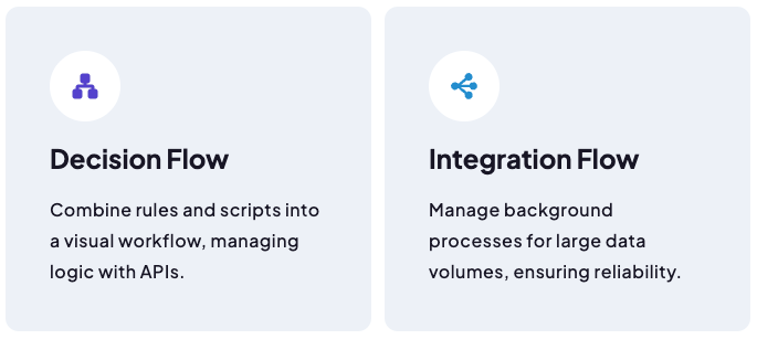 Currently there are six different types of rules in the engine: Decision Tree, Decision Table, Lookup Table, Scripting Rule, Decision Flow, and Integration Flow. One of our popular rules, the Rule Flow, is accessible but it has been improved by the new flows, Decision and Integration.&#x20;