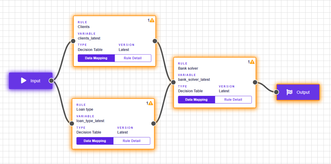 If the rule has no inputs mapped. It borders in orange and displays a <mark style="background-color:orange;">warning icon</mark>&#x20;