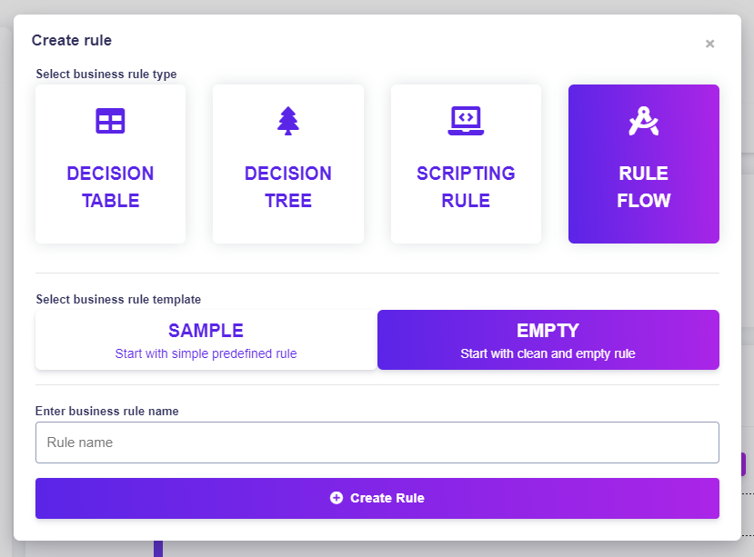 To display the rule creation pop-up click the <mark style="background-color:purple;">**Create Rule**</mark> button on the sidebar.